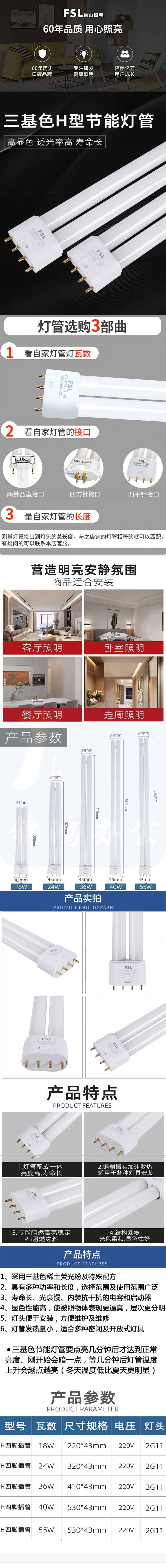 佛山照明 H灯管36W 41cm T5四针插管三基色荧光节能灯管筷子管白光