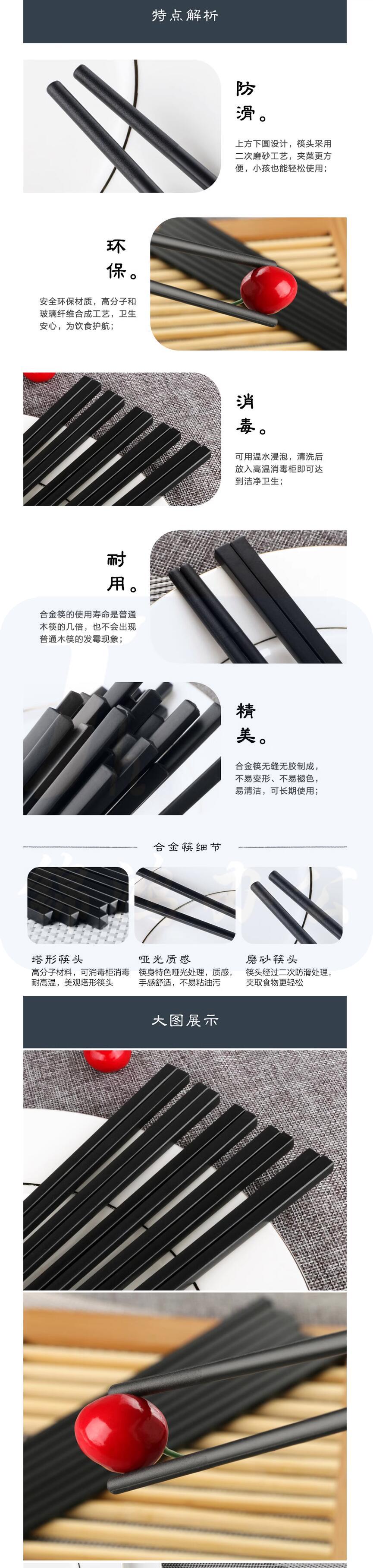 合金黑色尖头筷子 耐高温防滑筷 100双起订 货号:JC