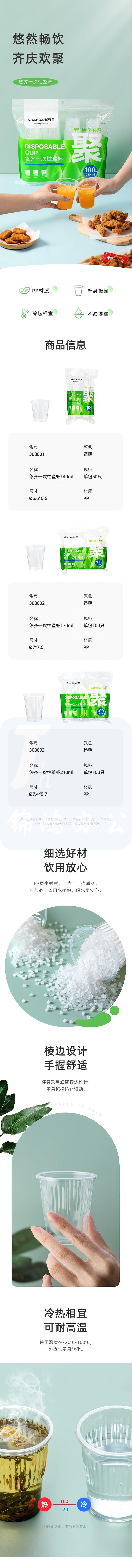 茶花 一次性杯子航空杯塑料杯加厚耐高温 170ml 100只 货号:GD