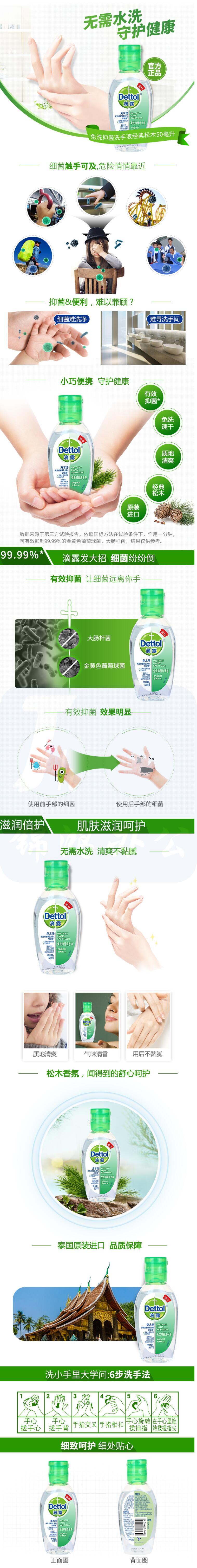 滴露(Dettol) 经典松木50ml 抑菌免洗洗手液 消毒凝胶