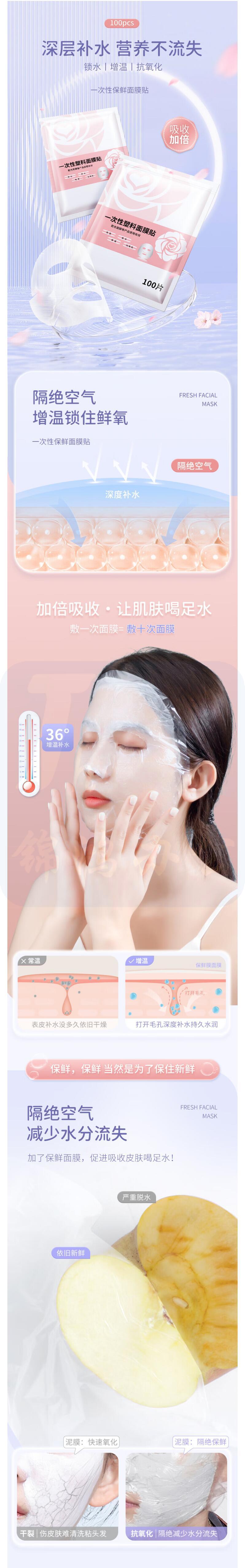 妮丽雅 一次性保鲜膜面膜贴 100片/袋 货号:JC