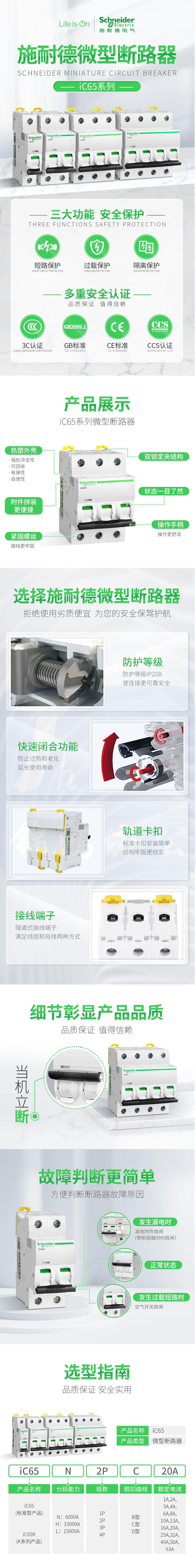 施耐德 回路开关C65N-3P-D25A 货号:JC