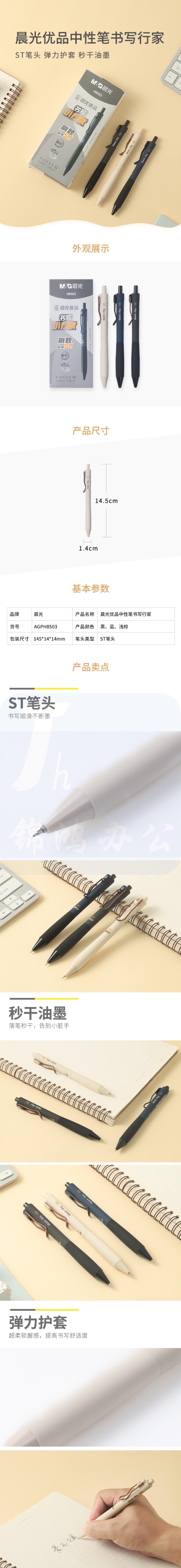晨光优品按动中性笔0.5mm书写小行家秒干黑色ST笔头 12支/盒AGPH8503