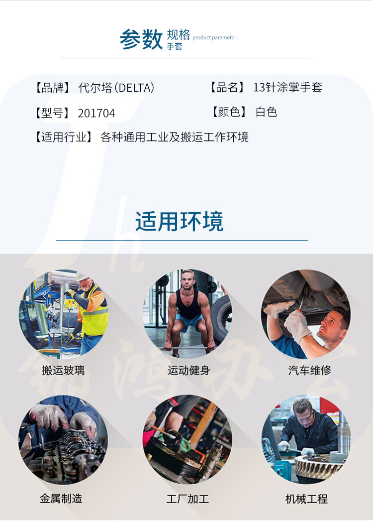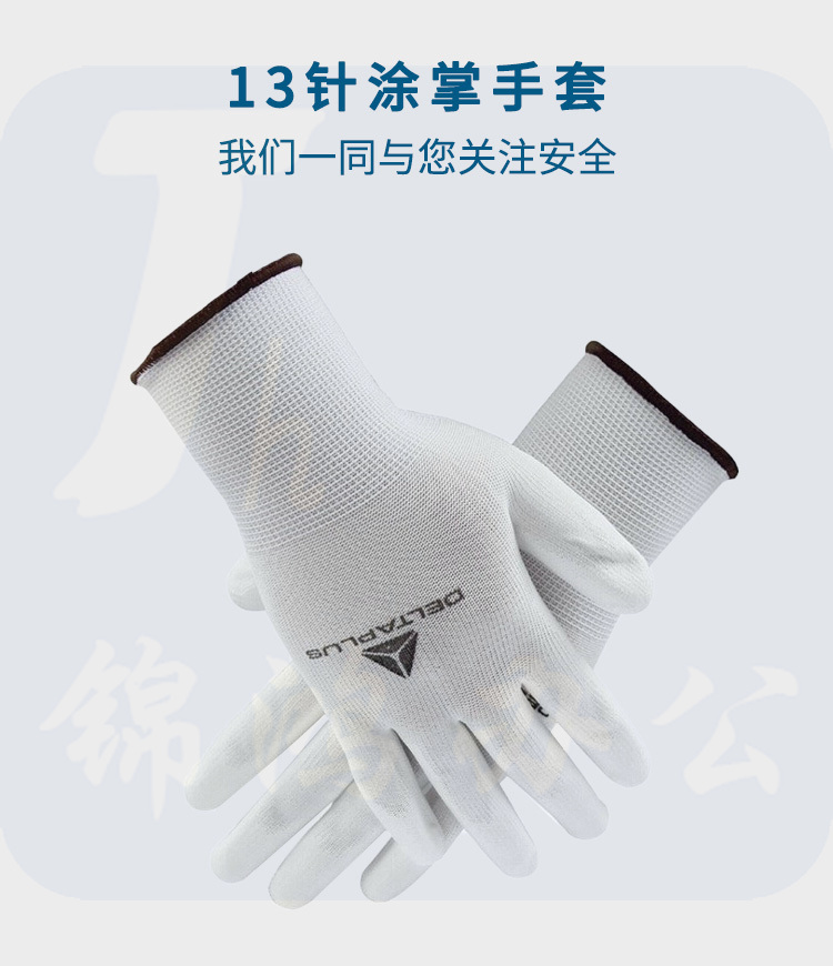 代尔塔 201704 PU精细操作手套 13针涂掌手套 掌背透气 弹性袖口