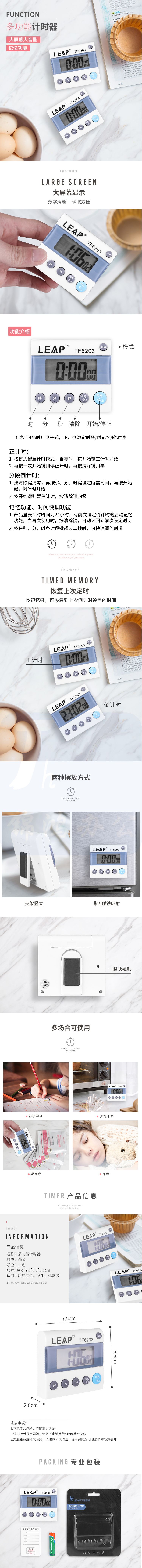 天福秒表 TF6203 多功能厨房定时器 电子计时器 时钟倒计时器计时器提醒器 白色