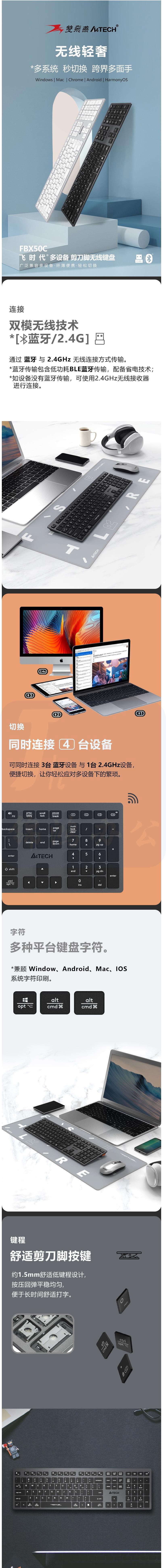 双飞燕 FBX50C无线蓝牙四模键盘可充电超薄轻音便携键盘 货号:GD