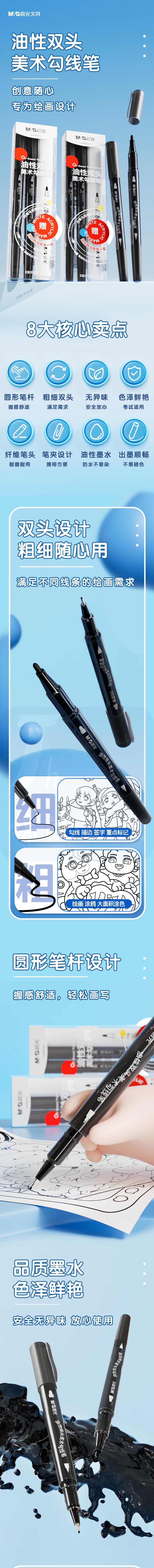 晨光 双头油性美术勾线笔(2支勾线笔+1支白色马克笔)HAPM2354