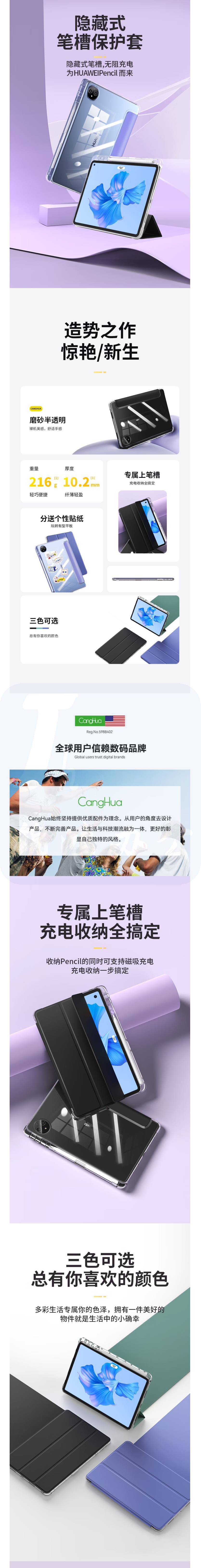 仓华 平板保护壳 华为matepad Pro 11保护套带笔槽 超薄防摔皮套 黑色 货号:JC