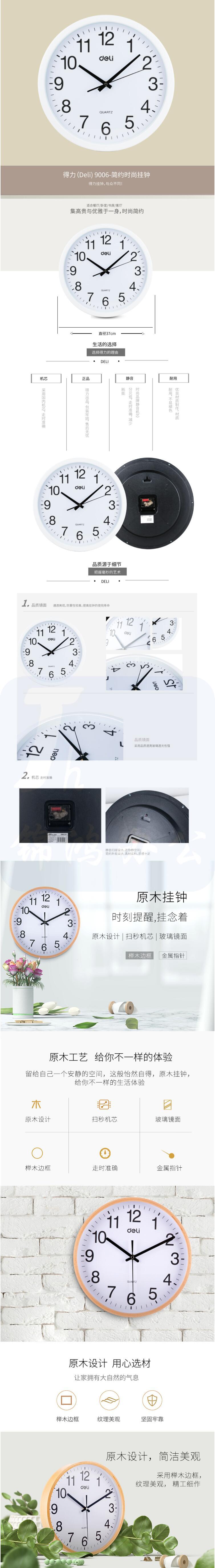 得力 圆形挂钟钟表 9006 37cm简约时尚挂钟 白色