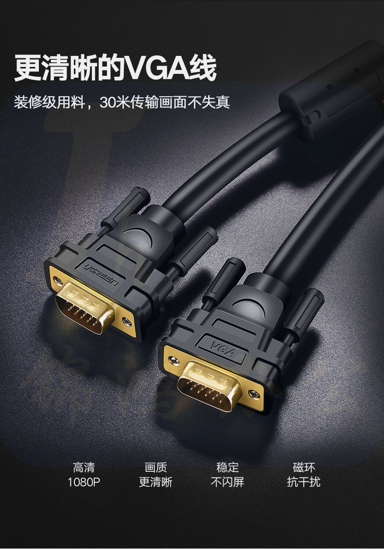 绿联 VGA线3+6工程级连接线 公对公高清视频线 电脑显示器投影仪延长转接线 1.5米 11630