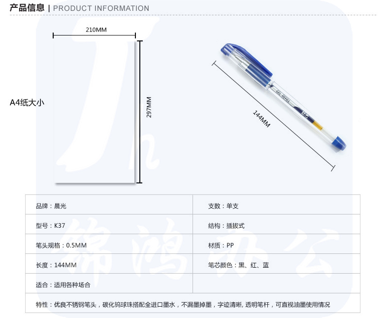 晨光 K37 中性笔0.38mm 记账笔水笔特细笔签字笔 红 12支