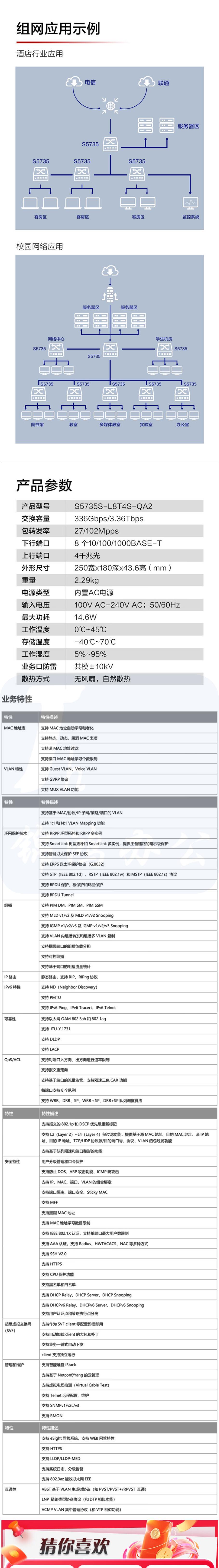 华为 8口千兆POE供电交换机S5735S-L8P4S-QA2网管网络网线分线器
