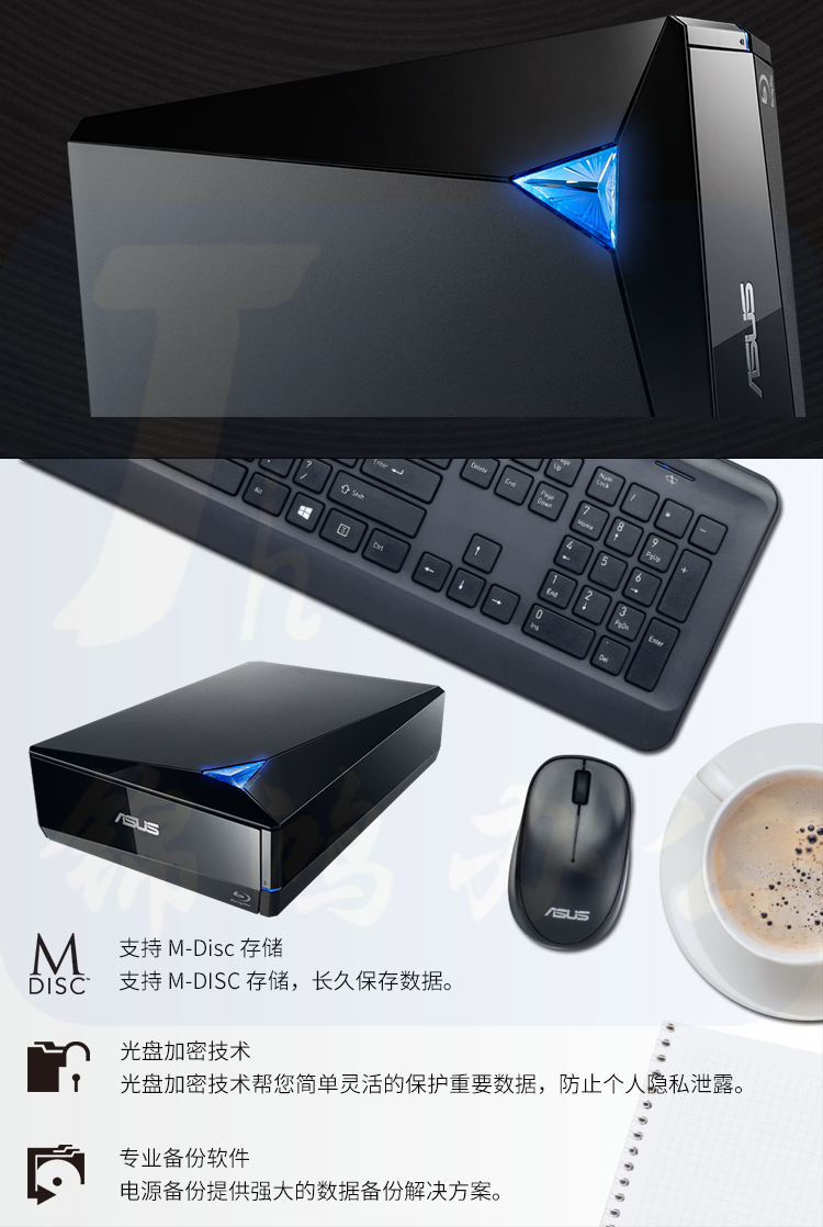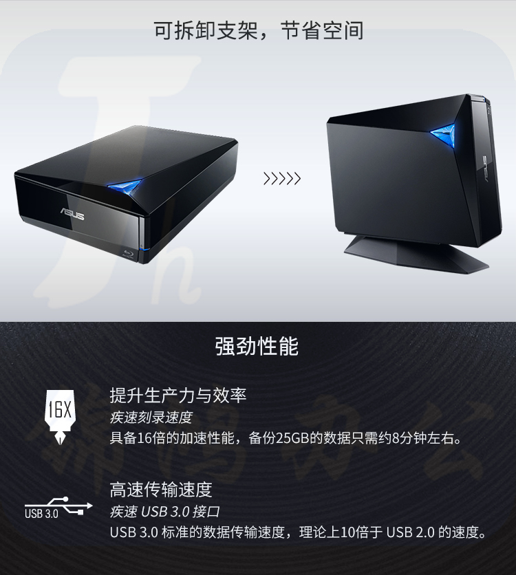 华硕(ASUS)BW-16D1H-U PRO 16倍速USB3.0外置蓝光 光驱刻录机 黑色(兼容苹果系统/BW-16D1H-U PRO)