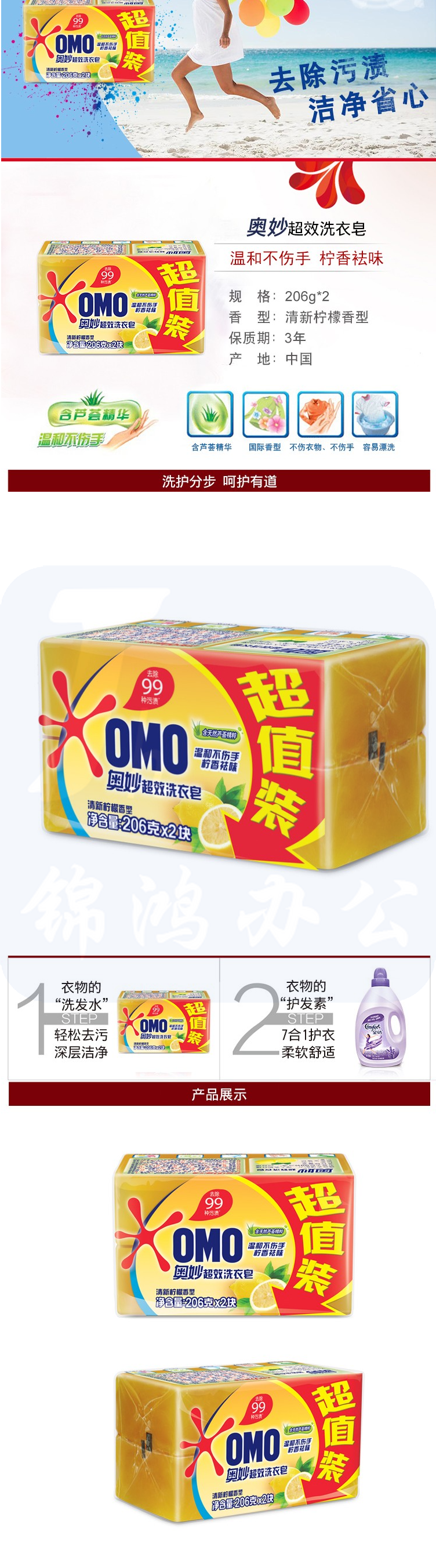 奥妙 206g透明皂 超效洗衣皂 2块/组
