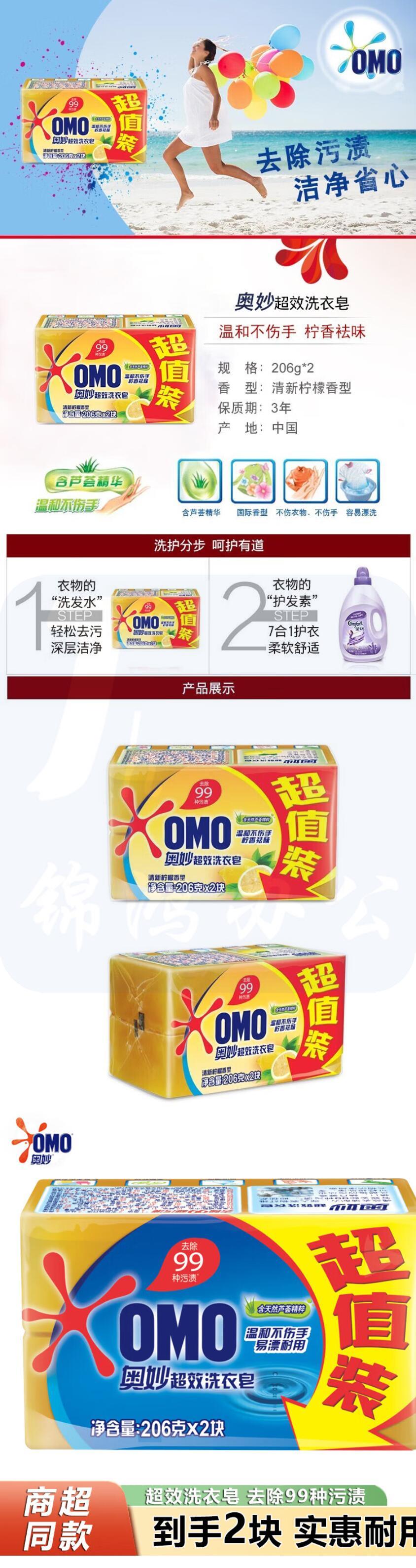 奥妙 透明皂206g*2块 超效香皂洗衣皂 (2块装随机发货)
