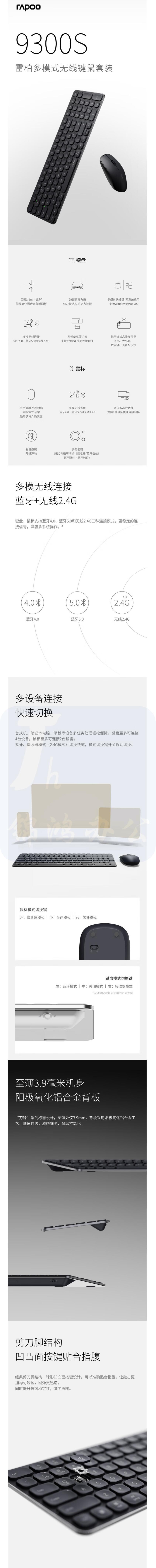 雷柏 9300S 99键无线/蓝牙多模键鼠套装 (黑、白可选) 货号:JC