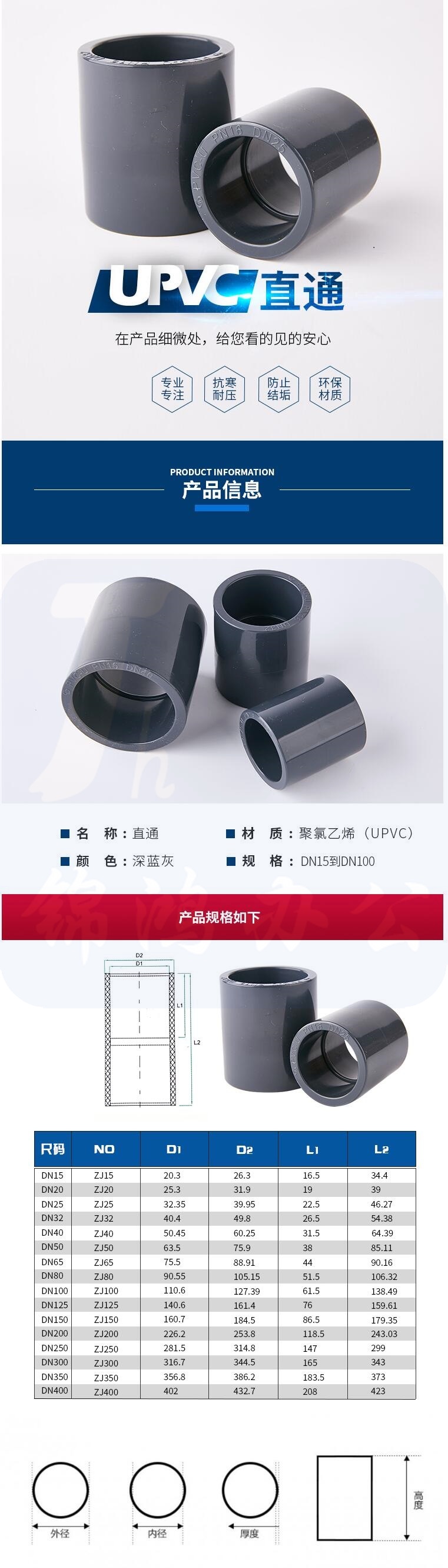 PVC-U直接 UPVC直通 UPVC管接头 63mm