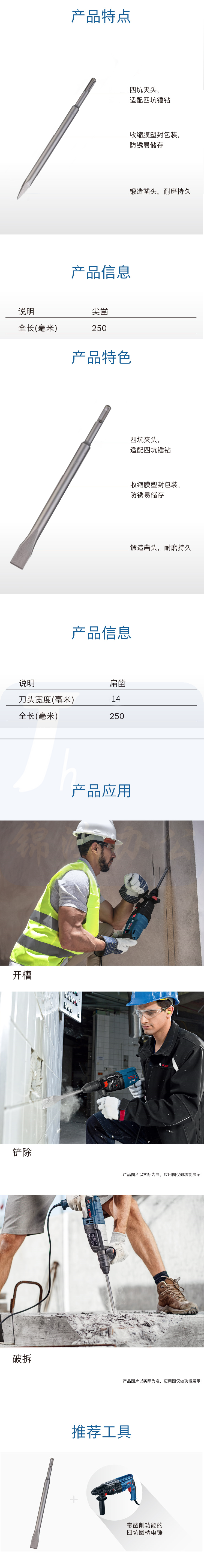 大地(DADI)14*250 尖 元四坑钢凿电锤镐尖镐钎凿子 尖头
