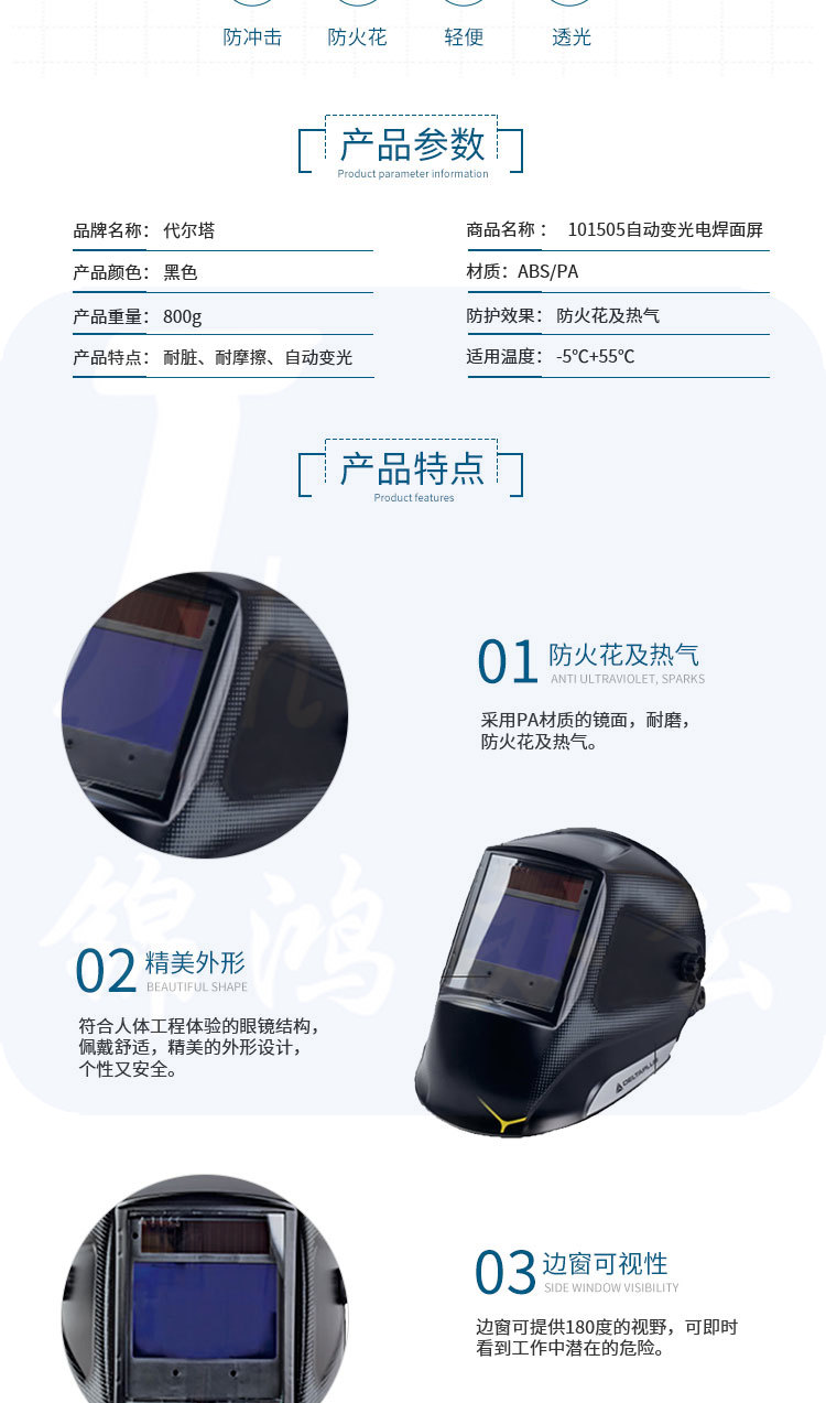 代尔塔 101505 自动变光电焊面屏 焊工焊接烧焊防护面屏