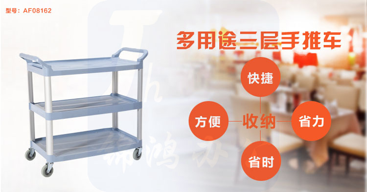 白云清洁 大号送餐车静音酒店三层酒水车小吃车手推车加厚餐车08161