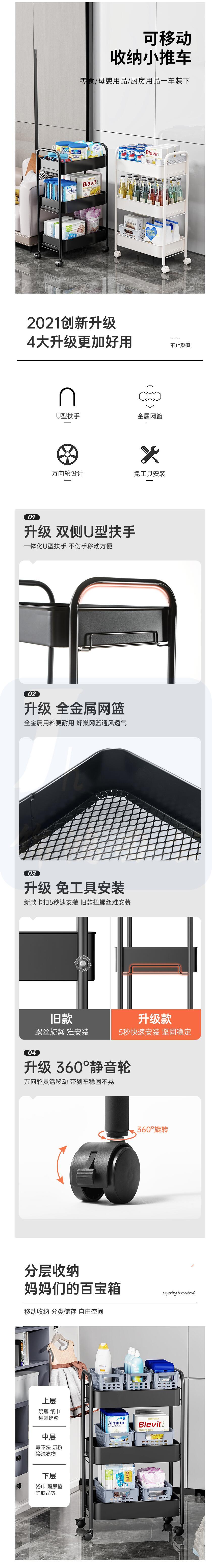 溢彩年华 小推车厨房蔬菜储物车 可移动手推车3层 货号:JC