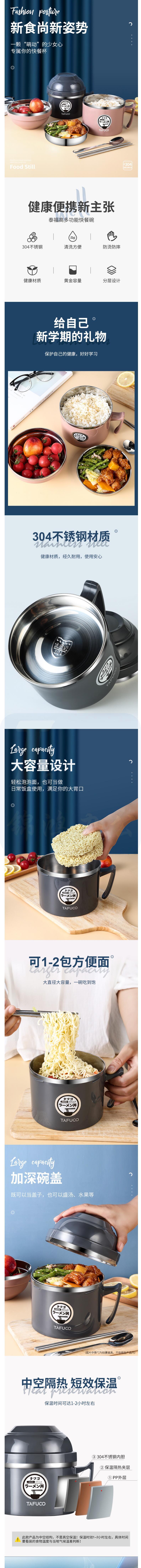日本泰福高泡面碗多功能快餐杯 304不锈钢便当碗 双层隔热防烫 T5275 深灰色 1.3L