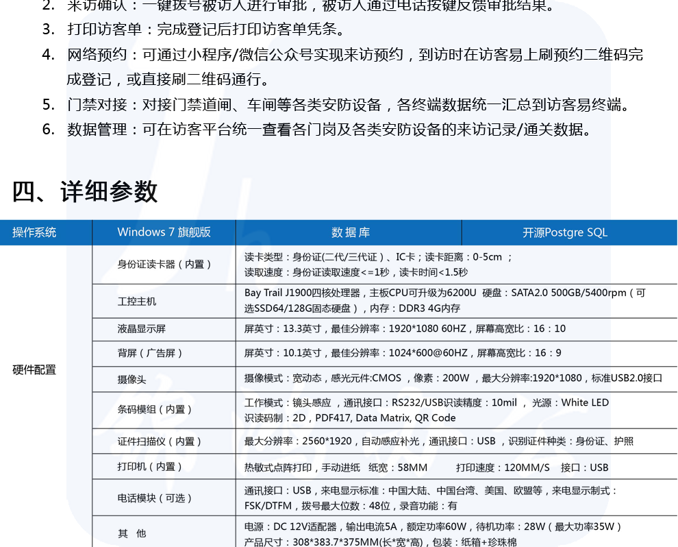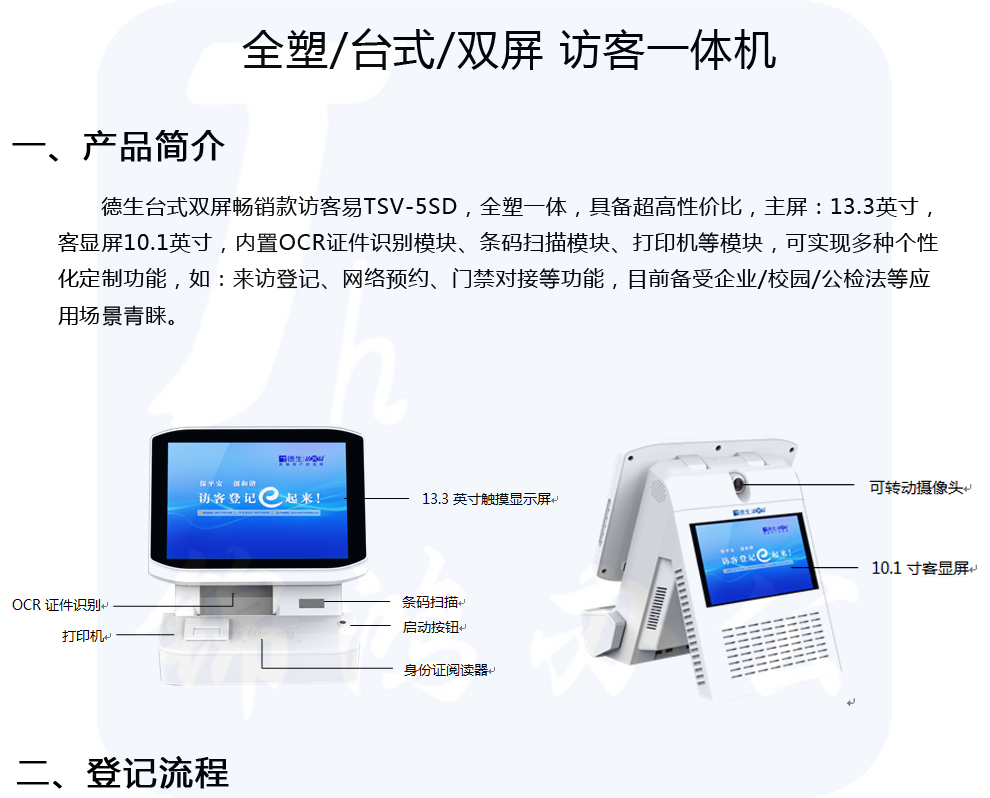 德生访客易TSV-5SD 智能访客一体机 出入登记管理系统 全塑双屏 标配