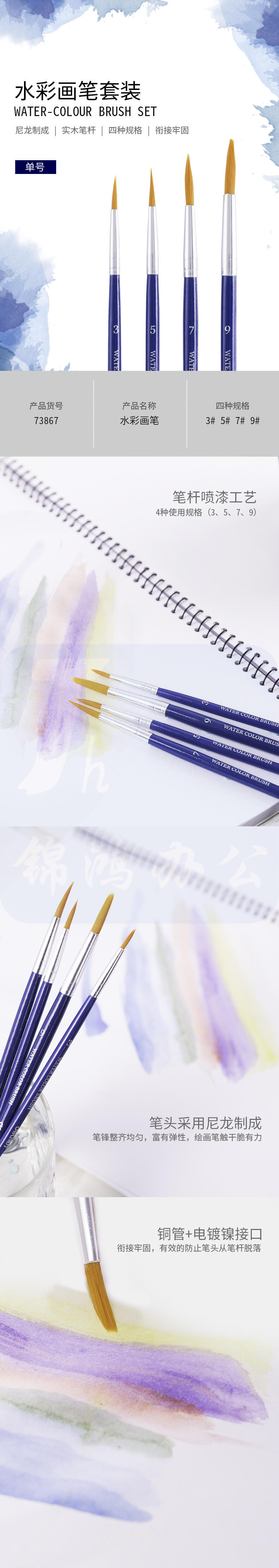 得力 4支单号3/5/7/9水粉画笔油画笔油画专用笔 蓝色73867