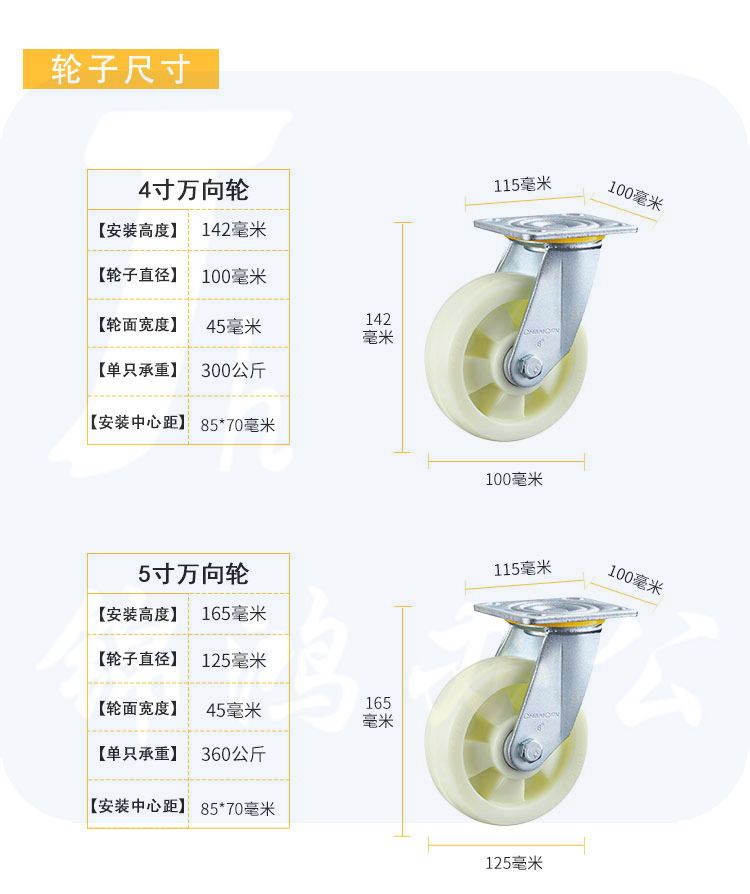 6寸转向(黄色) 尼龙轮(劲龙系列)