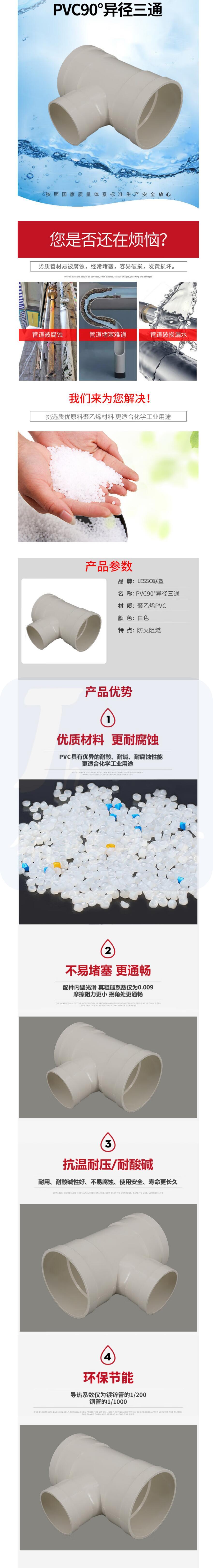 U-PVC异径三通 63*40mm 货号:YC
