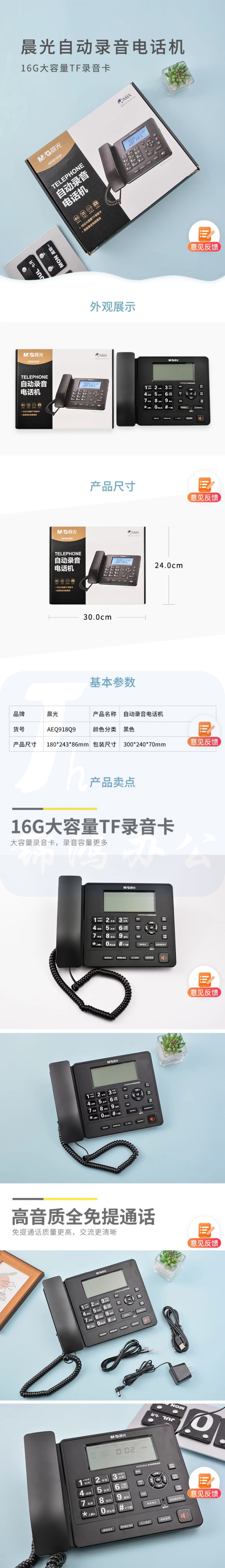 晨光 AEQN918Q9录音电话机座机自动录音
