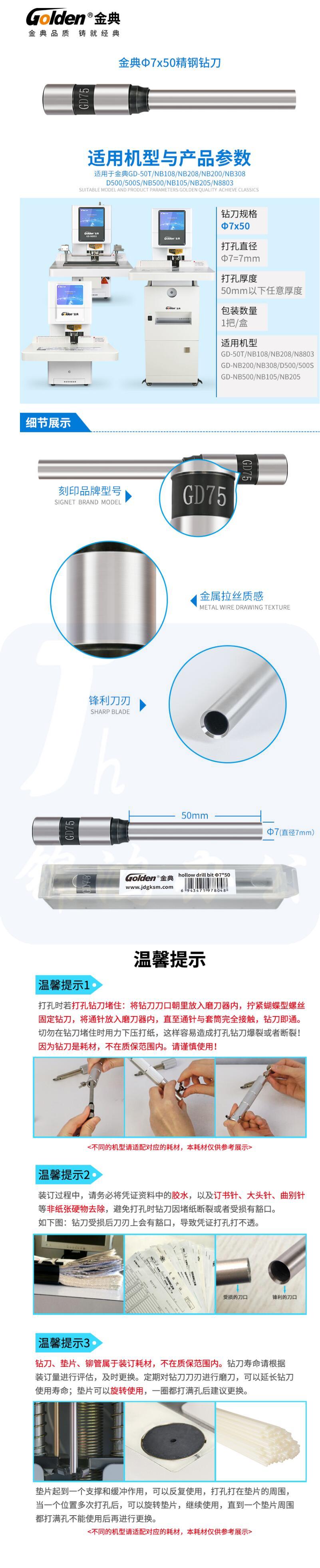 金典 打孔刀 财务装订钻刀GD75 7*50MM