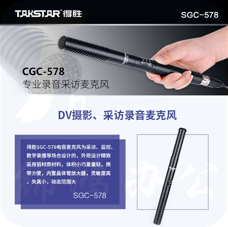 得胜(TAKSTAR)SGC-578采访麦克风新闻会议录音话筒 DV摄像机单反机外接采访麦 黑色 货号:JC