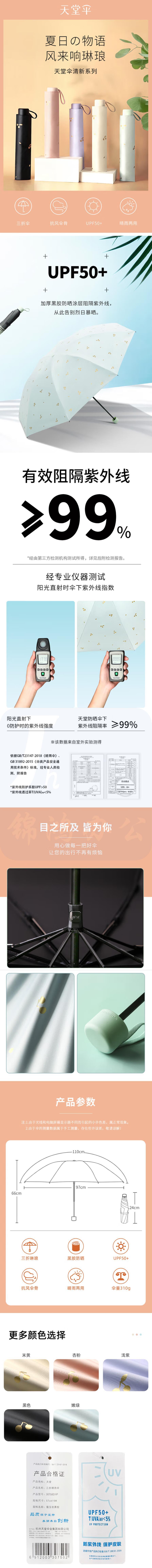 天堂 30750EVIP便携黑胶遮阳太阳伞防晒防紫外线三折叠 琳琅 粉绿