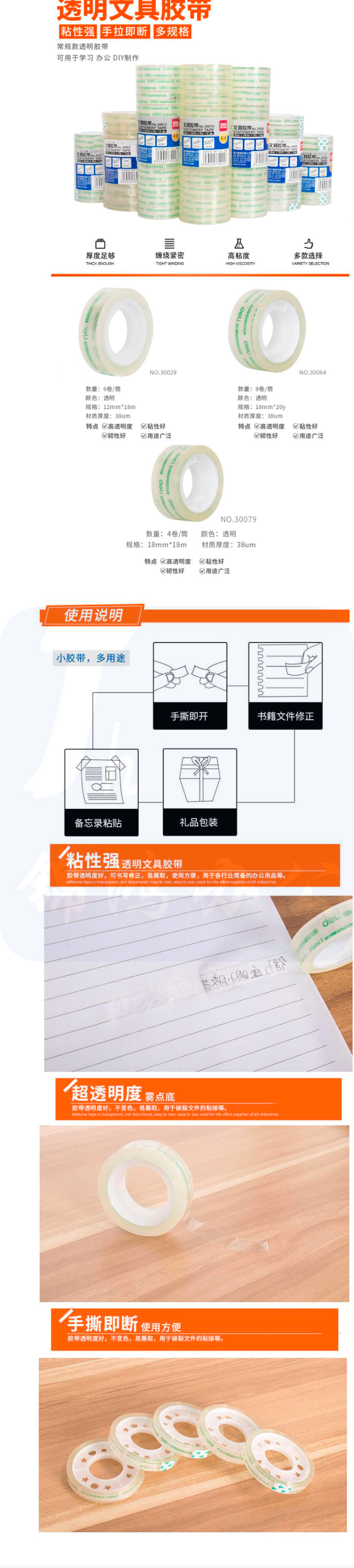 得力 30064透明 胶带 18mm*20y*38um 8卷装