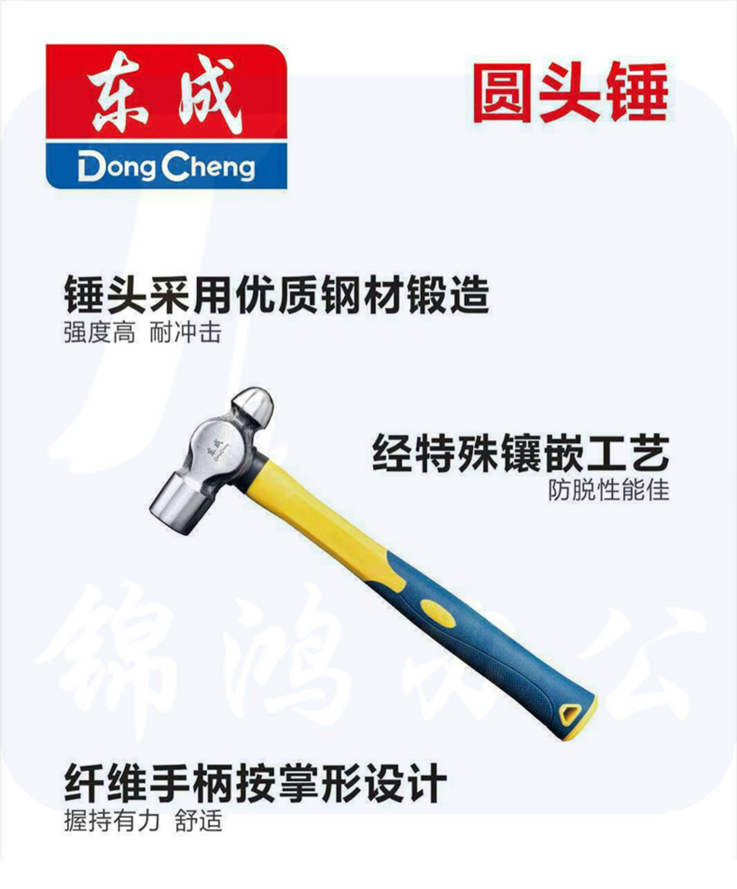 东成 1.5P纤维柄元头锤 圆头锤1.5磅