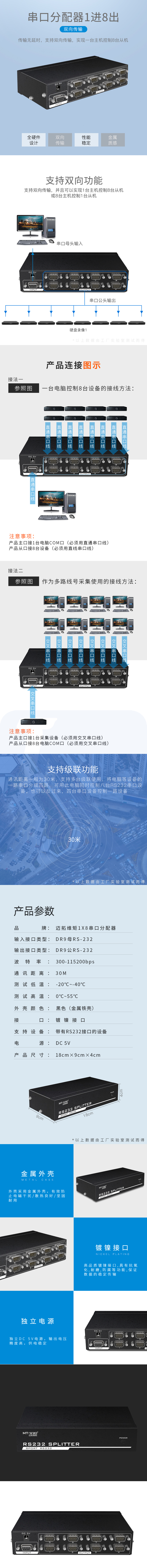 迈拓维矩(MT-viki) 串口分配器 一分八COM口9针同时输出RS232信号支持双向和级联 MT-RS108 1进8出 八口