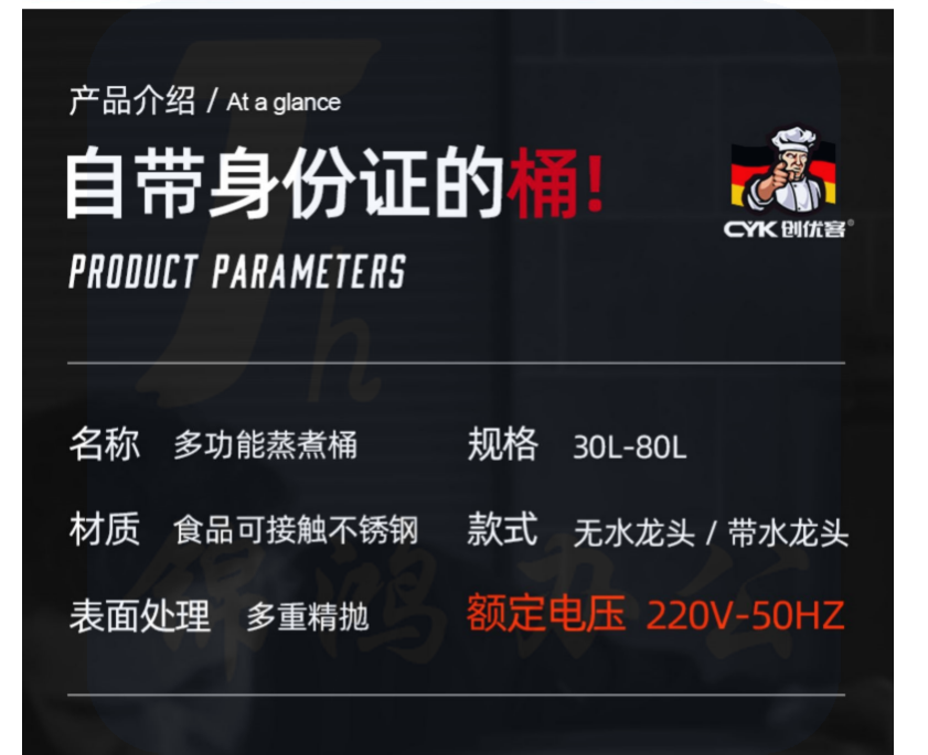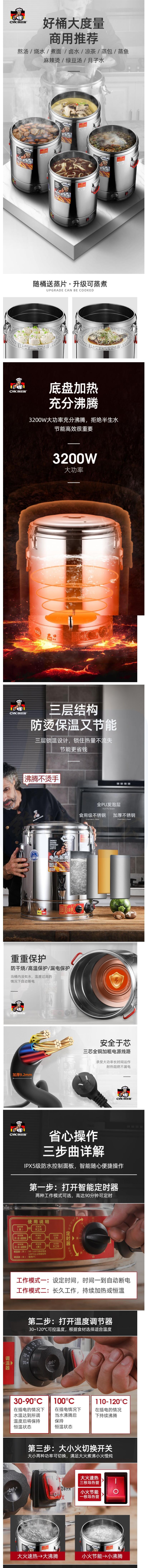 创优客 60L无龙头 电热蒸煮汤桶 不锈钢烧水桶 加热保温桶