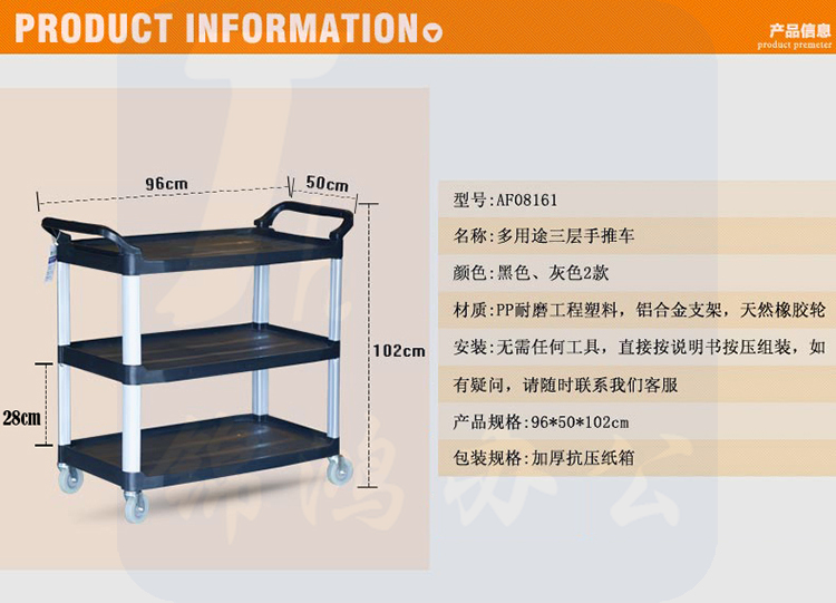 白云清洁(BAIYUN)AF08176送餐车静音酒店三层酒水车