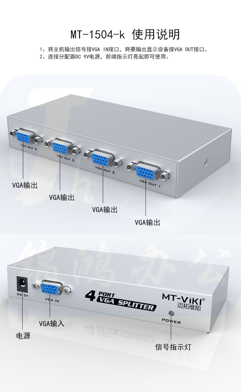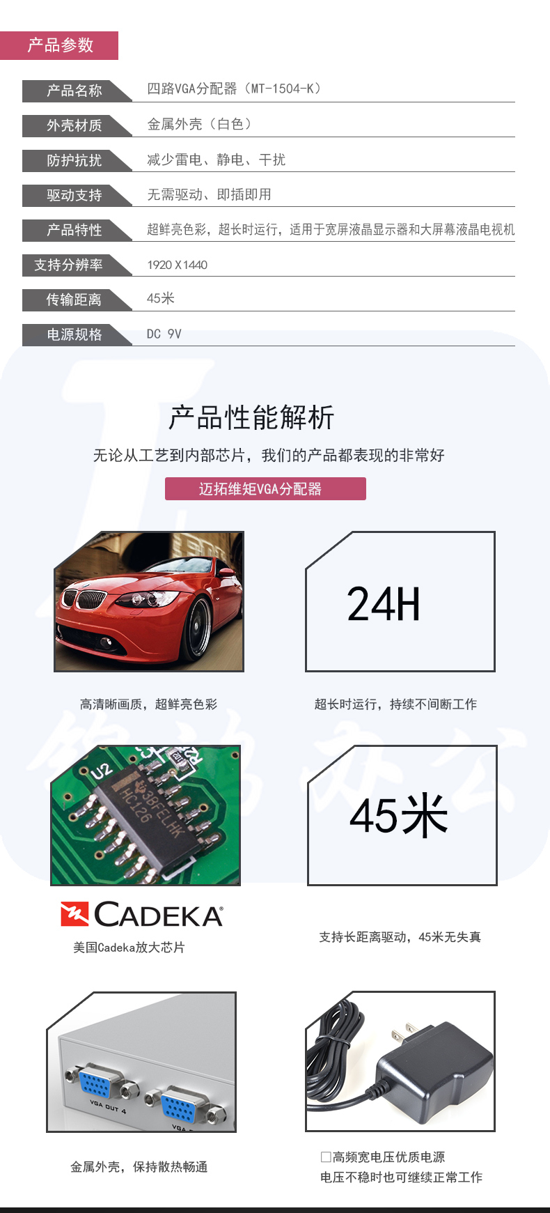 迈拓维矩MT-1504K vga分配器一分四分频器一进四出高清vga分屏器1分4
