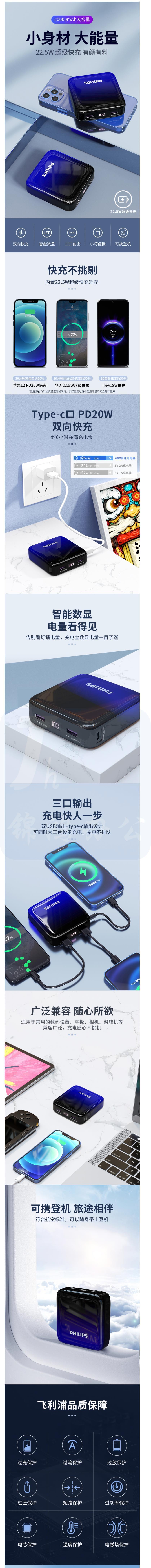 飞利浦 DLP2115B 充电宝 22.5W超级快充20000毫安 货号;JC