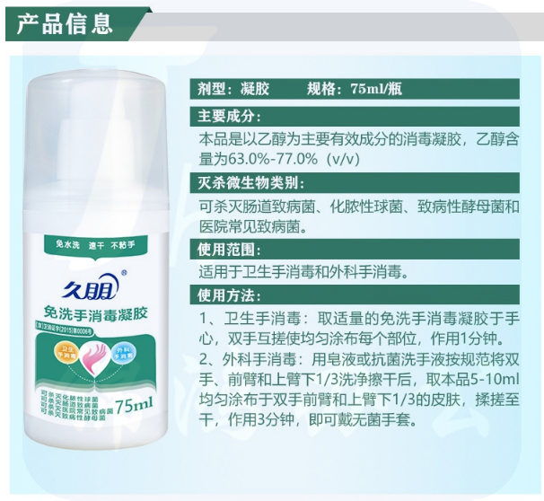 久朋 便携式75ml 免洗手消毒液 杀菌洗手液 75%