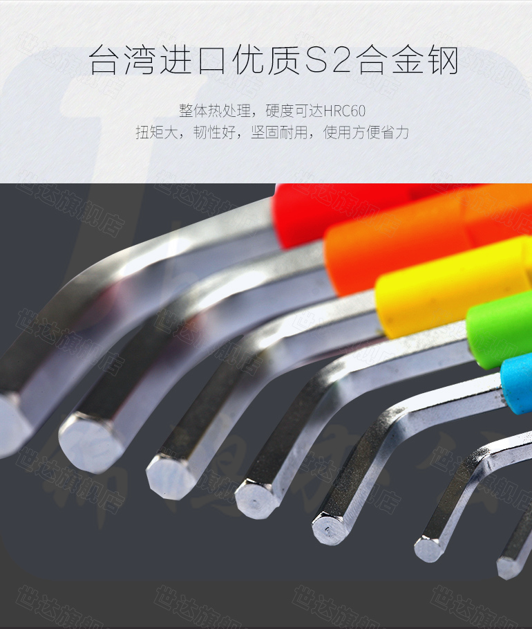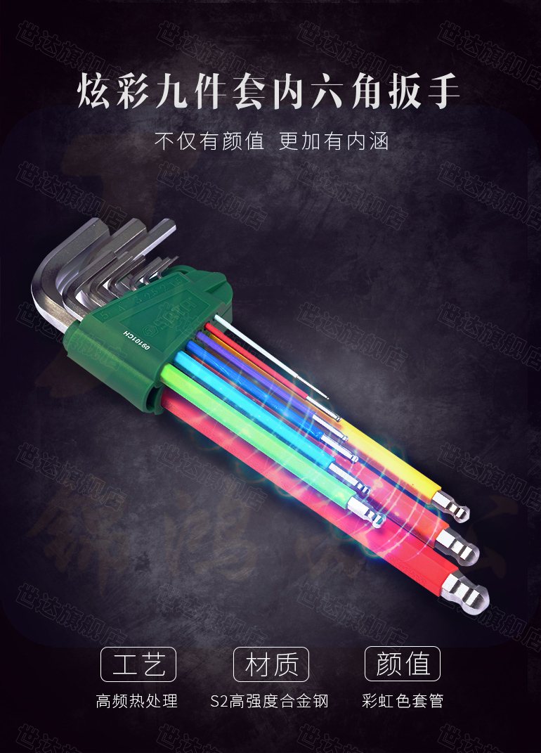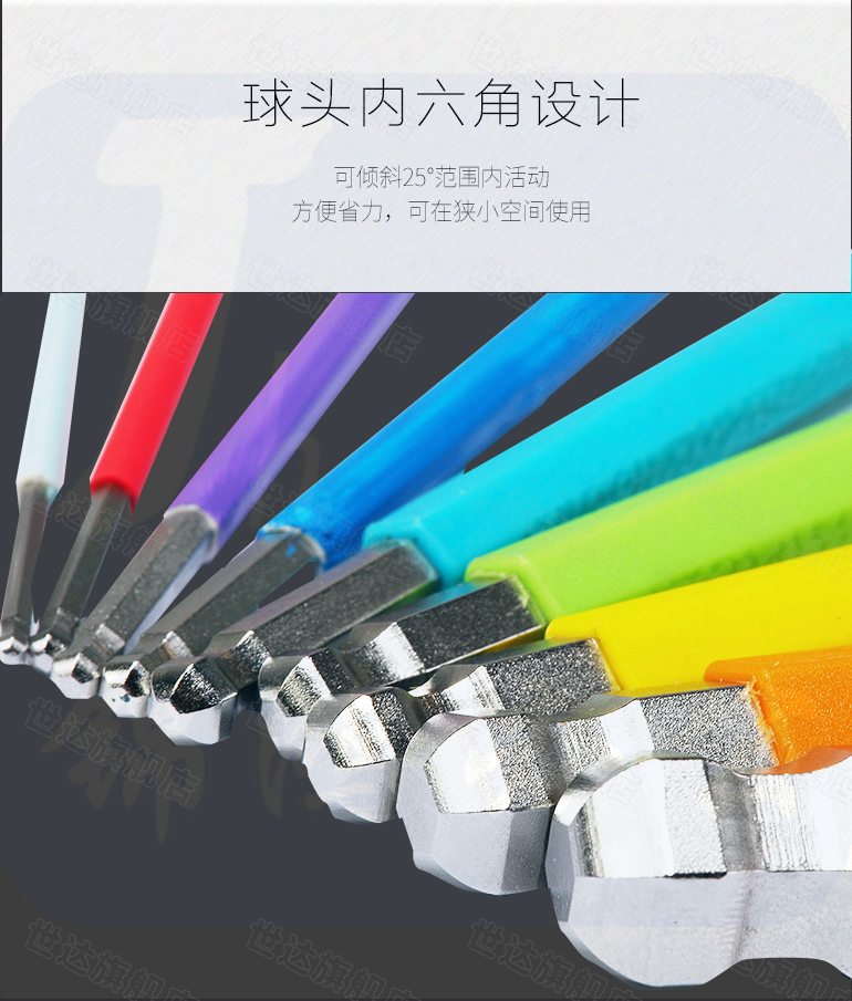 世达(SATA)彩虹系列9件特长球头内六角扳手组套 09101CH