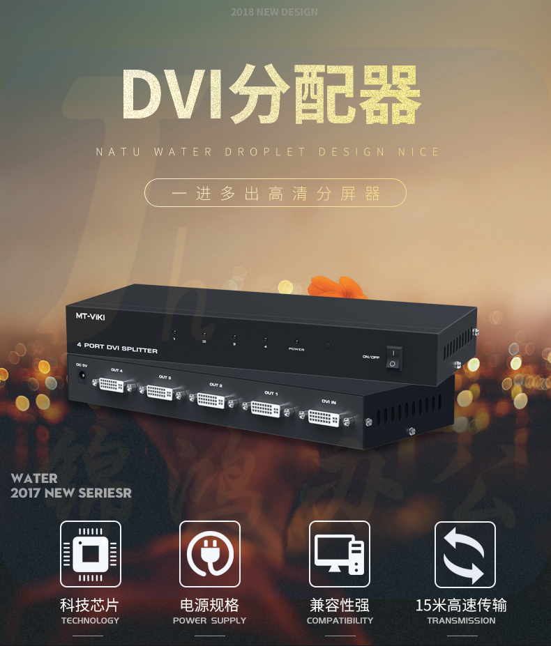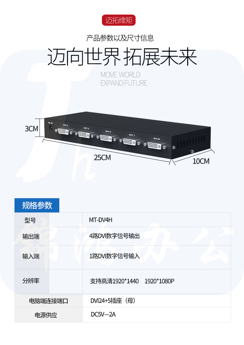 迈拓维矩MT-DV4H 高清dvi分配器1进4出一分四电脑显示器分屏器1080p