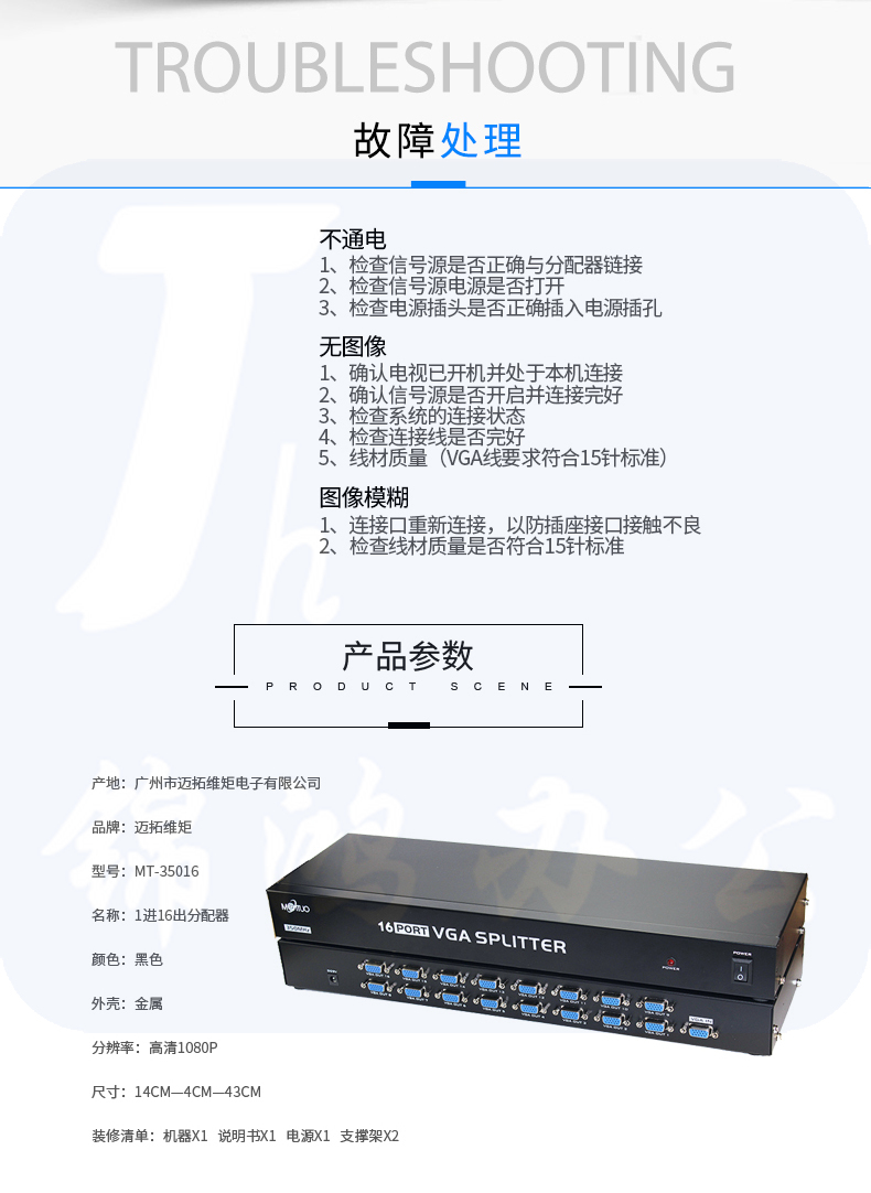 迈拓维矩MT-35016 vga分配器一分十六分频器一进十六出分屏器1分16