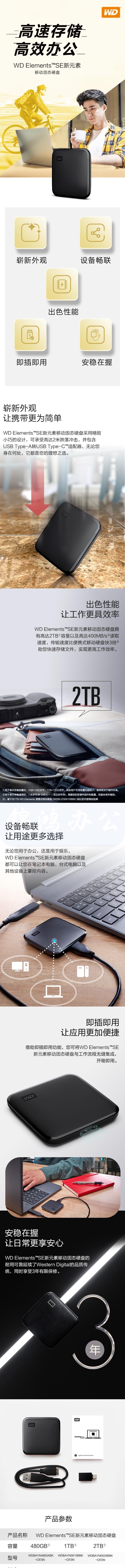 西部数据 新元素seSSD移动硬盘固态 USB3.2接口type-c手机连接兼容MAC便携硬盘 2TB