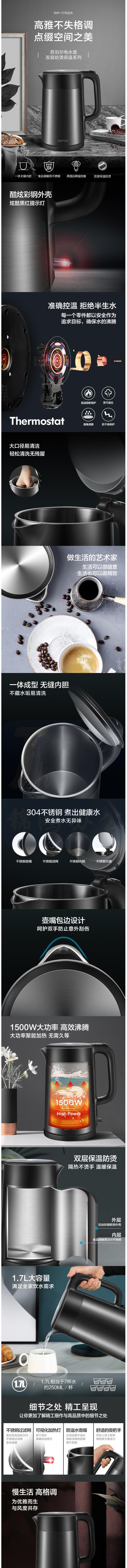 苏泊尔(SUPOR)双层防烫烧水壶热水壶 电水壶 1.7L SW-17S32A