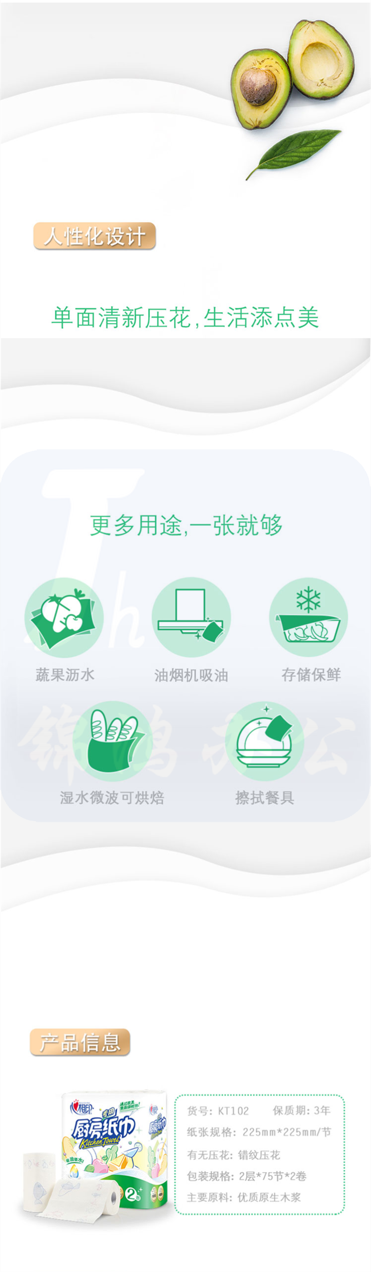 心相印 吸油纸厨房纸 厨房用纸 75节*2卷 厨房纸巾