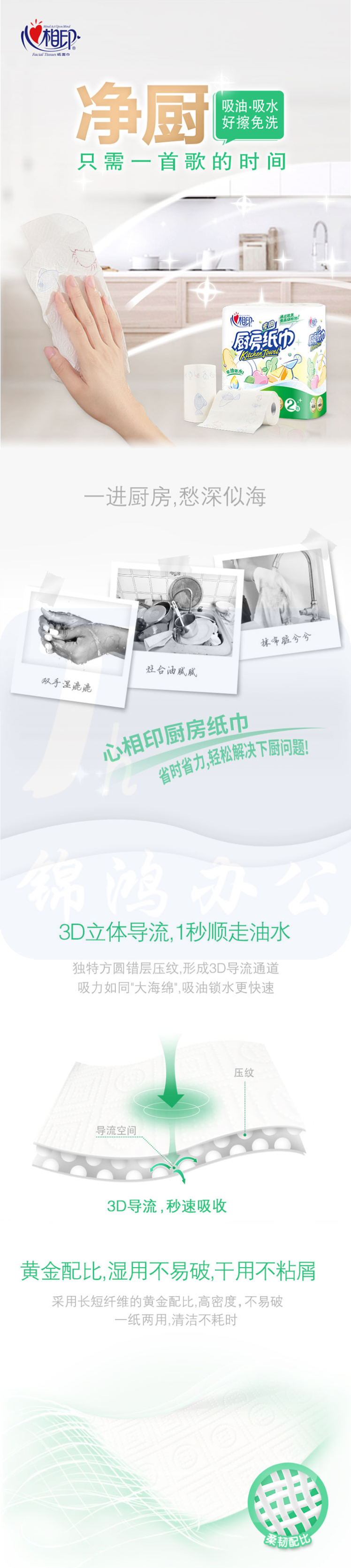 心相印 吸油纸厨房 厨房用纸卷纸吸水纸 加厚擦手纸 厨房纸巾 2卷/提