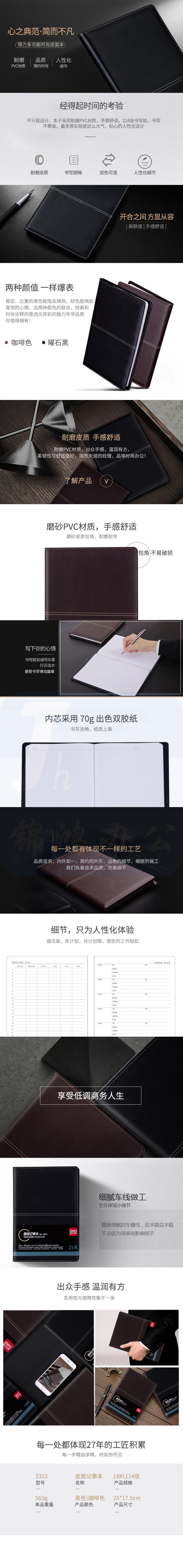 得力(deli)25K112张磨砂皮面笔记本记事本皮面本205*143mm 黑色3324